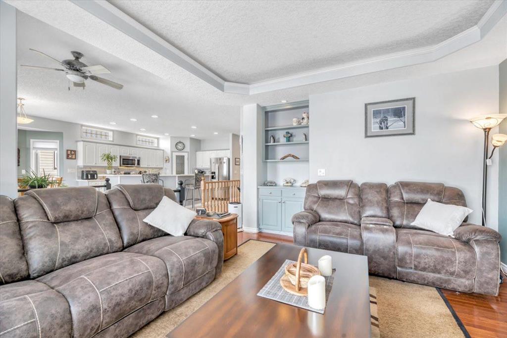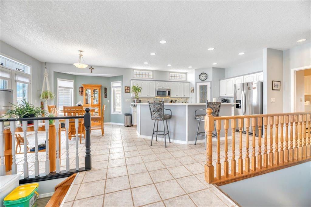 This property will check all the boxes! Immaculate and move-in ready, set on a fully fenced 7,200 sq ft mature lot in the heart of Diamond Valley. You will appreciate this beautiful open-concept raised bungalow! Features include oak hardwood and tile, fresh paint with pure , uninterrupted natural sunlit ambience throughout. The kitchen is centred around an oversized island, flowing into a generous dining space and comfortable living room with gas fireplace. The main floor includes a beautiful primary suit...