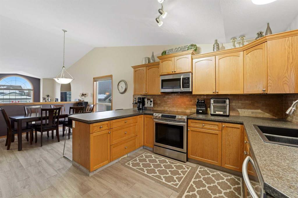 Beautifully maintained bi-level backing onto the greenbelt in desirable Lancaster—where convenience meets value. This 4-bedroom home is a fantastic find, ideally located close to schools, Collicutt Recreation Centre, shopping, and more. The main floor welcomes you with a spacious living room featuring a large picture window that fills the space with natural light. A few steps up leads to the heart of the home, where the open-concept kitchen and dining area connect seamlessly. The kitchen offers oak cabinet...