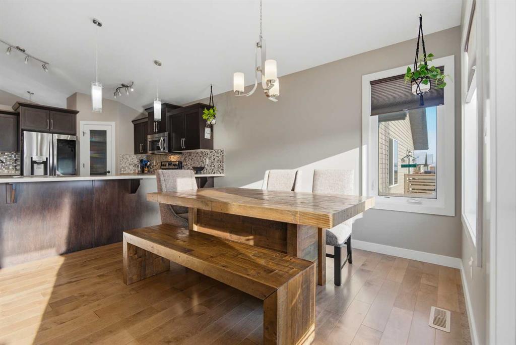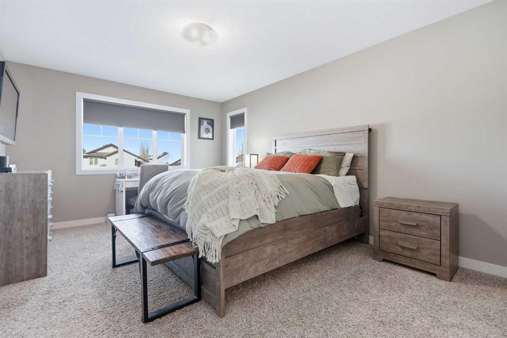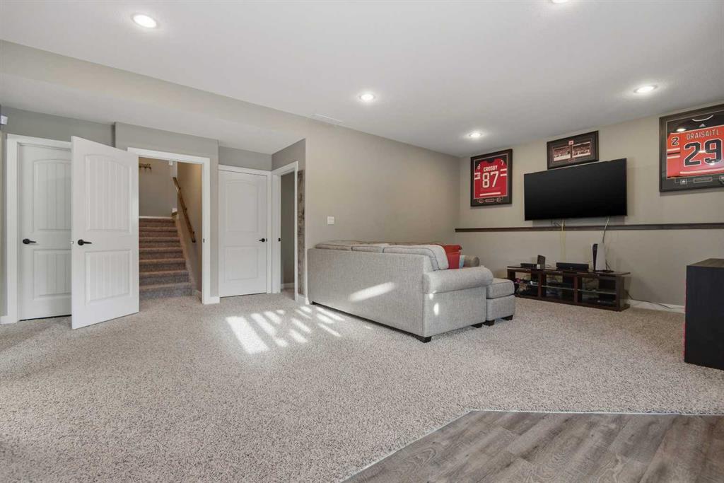 Classic family home, quiet close, bright backyard (with its own playground), short safe walk to elementary school and not far from local shops and restaurants....all ingredients for the perfect place to reside, raise a family and plan your future! This Blackfalds bilevel has a giant primary suite over the garage with a 4 piece ensuite and generous walk in closet. Main level has double vaulted ceiling, massive kitchen with upscale stainless appliances, family sized eating area with access to the deck for B...