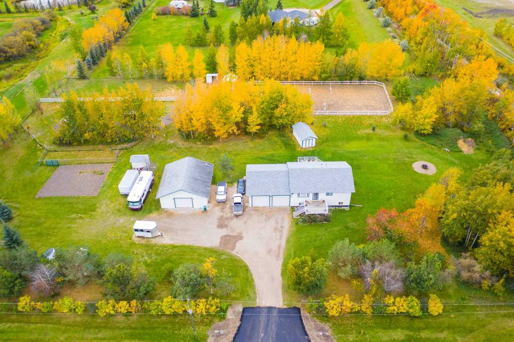 Welcome to this stunning 3-acre property in sought-after Dunkley Meadows, perfectly set up for horse lovers and anyone craving peaceful country living just minutes from the city. Located only 2 minutes from Grande Prairie with pavement the entire drive, this private acreage is tucked at the end of a dead-end road and surrounded by mature trees, creating a beautiful sense of privacy and seclusion. The property is exceptionally well equipped with a 70x150 outdoor riding area, 2 horse shelters, tie rack, hay f...