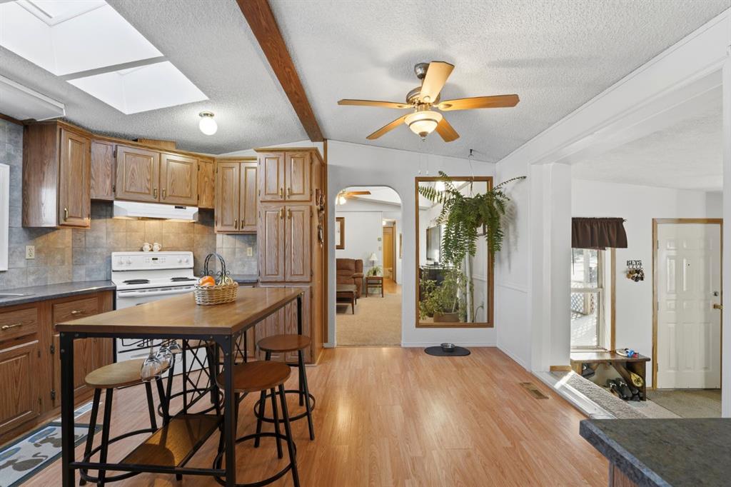 Welcome to Willow Hills Estates! Situated on its own lot on the edge of sundre in beautiful Mountain View County this 1992 manufactured home offer space comfort and exceptional value. With a low monthly fee of 131 covering water garbage and common area maintenance this is an affordable opportunity to own a peaceful well kept community. This home features a four bedroom plus den highlighted by a large addition that provides extra living space a wood-burning stove, perfect for families or those who need room ...
